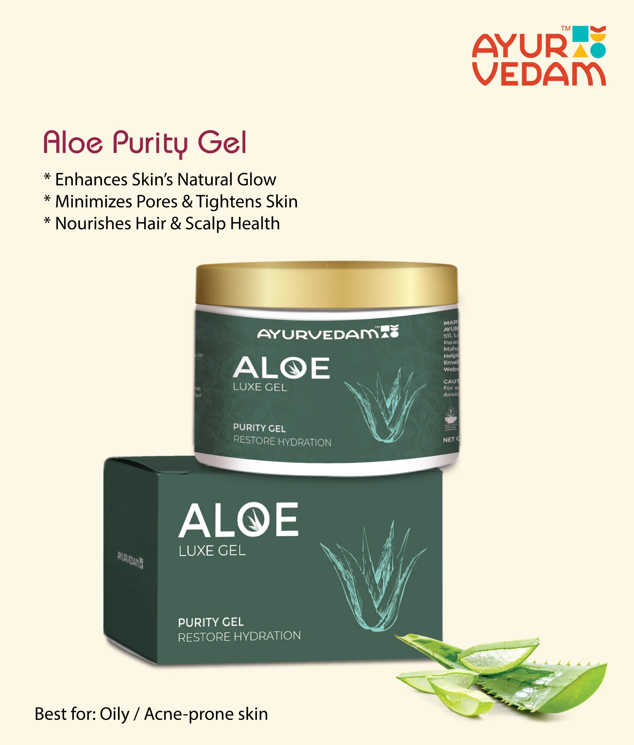 – Aloe vera gel is a multi-purpose gel, used as a moisturiser, hair mask, and post-sun soother. It’s anti-inflammatory and cooling properties help unclog pores and provide a dewy skin texture. Ayurvedam’s aloe purtiy gel, is the best aloe vera gel, 100% natural and chemical-free.