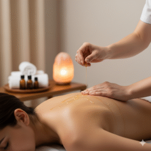 – The treatment begins with a soothing Ayurvedic Sole Massage using carefully selected warm oil. This oil is chosen after the Nadi Parikshan based on your dosha, ensuring the therapy matches your internal needs. The gentle yet focused movements allow the oil to penetrate the nerve endings on the soles, helping relax the entire nervous system. This is where Tibetan and Ayurvedic techniques blend together, creating a grounding effect that stabilizes the mind and body.